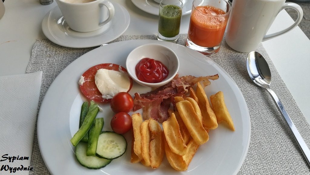 W godzinach porannych serwowane jest tu śniadanie, które na przestrzeni pół roku uległo lekkiej zmianie – na weekendy pojawiło się prosecco. Oprócz wina musującego znajdziemy tu szeroki wybór dań na ciepło: jajecznicę, kiełbaski, pomidory w ziołach, placki ziemniaczane czy np. frytki. Gdyby komuś czegoś zabrakło to działa tu również live cooking, gdzie możemy zamówić omleta czy świetne jajka po benedyktyńsku.