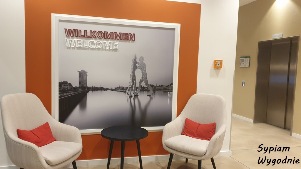 Planonowo dotarliśmy do Berlina, więc tuż około godziny 11tej pojawiliśmy się przy ladzie recepcyjnej z chęcią meldunku. Wręczyłem dowód osobisty, kilka kliknięć i słyszę, że pokój nie jest jeszcze gotowy. Nie zdążyłem odpowiedzieć, a usłyszałem jak jedna z Pań recepcjonistek rzuciła pod nosem ‘Scheisse’ i pokazała koleżance coś na monitorze. Efekt… znalazł się wolny pokój. Wtedy też energicznym ruchem recepcjonistka rzuciła na ladę długopis i kartę meldunkową mówiąc: 'signature’. To było… dziwne. Następnie, z racji statusu, wręczono butelkowaną wodę oraz kupon na przekąskę.