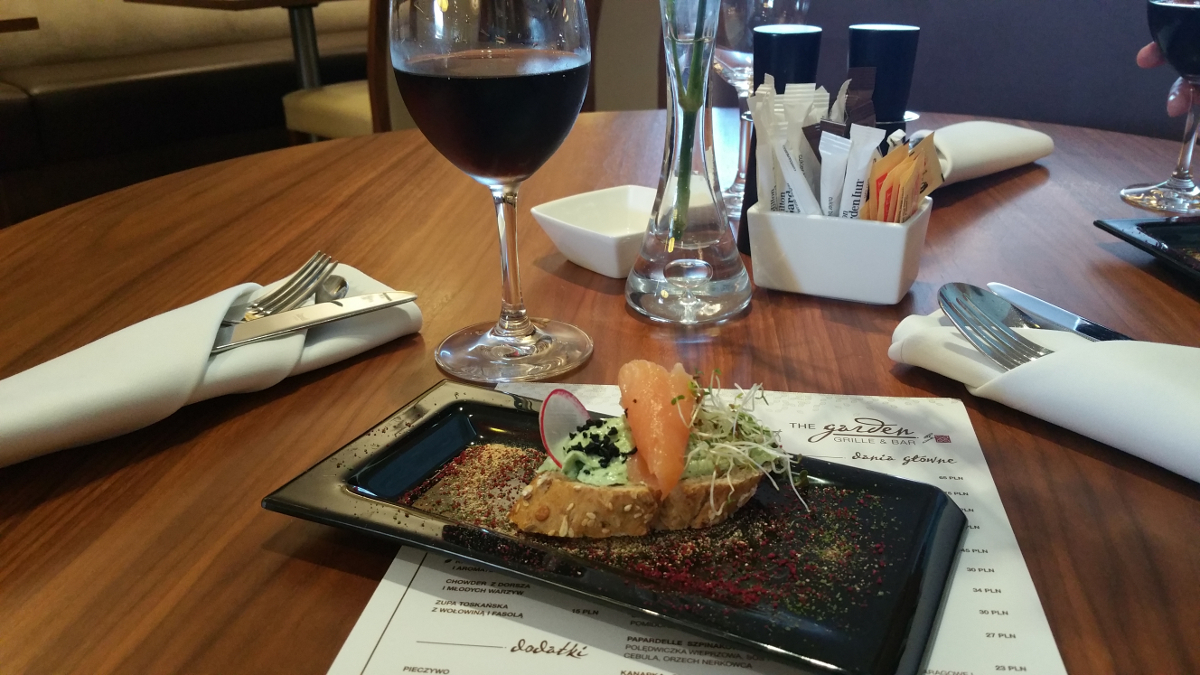 W hotelu znajduje się restauracja, z której korzystaliśmy niejednokrotnie. Bardzo mocno zaskoczyły nas ceny. Nie spodziewałem się, że w hotelu o kategorii 4 gwiazdek może być tak… tanio. Zamówione danie główne kosztowało 30PLN, ale trzeba zaznaczyć, że dość długo się na nie czekało. Przed daniem głównym otrzymaliśmy również statery, co by zaspokoić pierwszy głód.