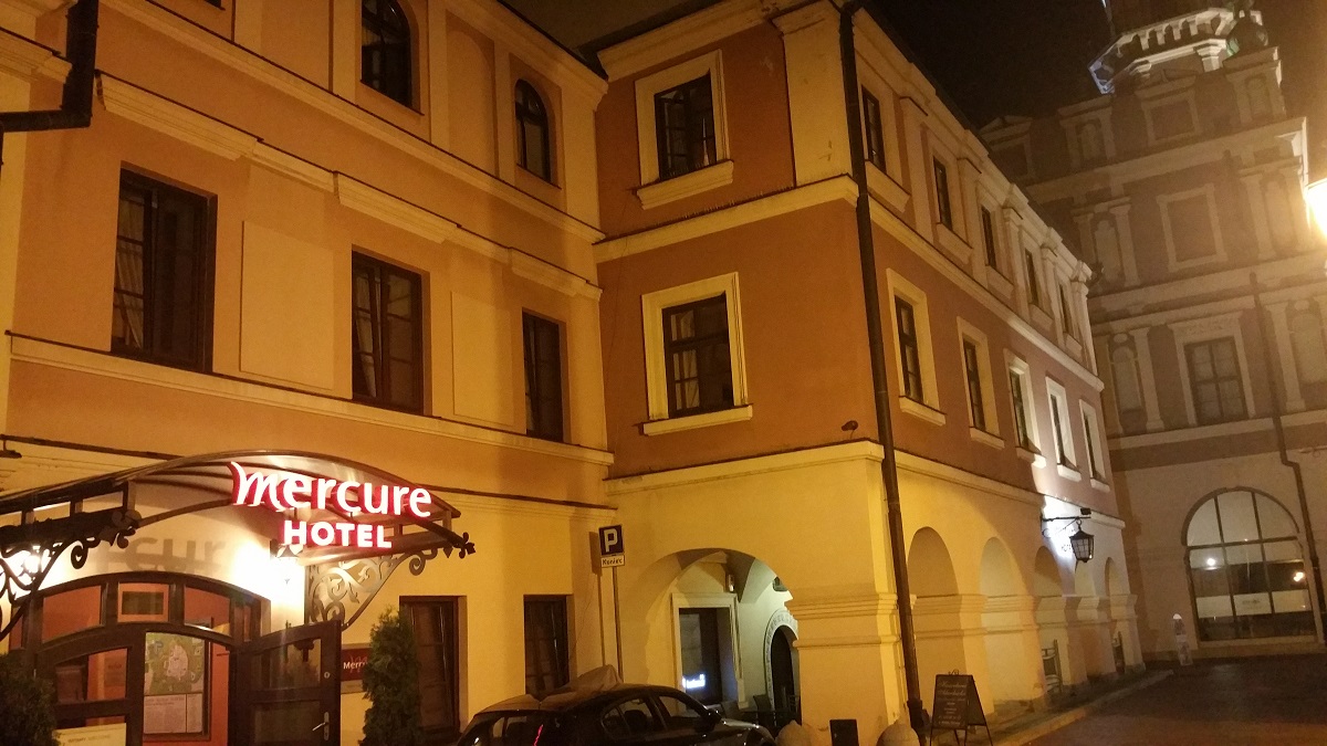 Zatrzymaliśmy się w Mercure Zamość. Hotel ten znajduje się w starej, zabytkowej kamienicy na rogu rynku. Sama bryła budynku jest imponująca. Ładnie odnowiona i oświetlona elewacja nadają mu przyjemny klimat. W hotelu znajdziemy sale konferencyjne, bar, restaurację, salę fitness, liczne korytarze i dwa dziedzińce – na jednym z nich w sezonie letnim organizowane jest kino pod chmurką. Bardzo fajny pomysł, szkoda, że nie udało mi się zahaczyć o seans 😉