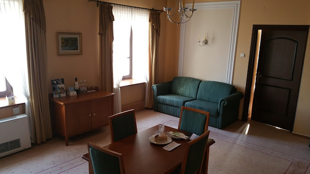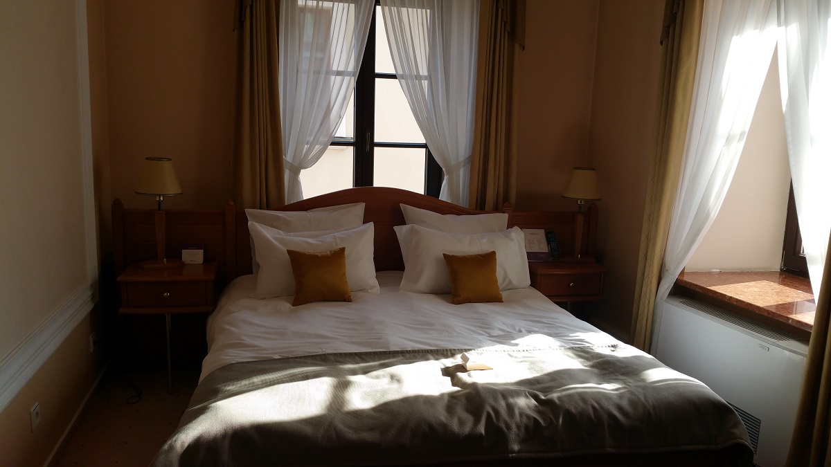 Ze względu na status otrzymaliśmy upgrade do apartamentu, który okazał się być bardzo przestronny. Okna w salonie miały widok na rynek natomiast z sypialni można było oglądać uliczkę prowadzącą do hotelu. Przyjemnie piło się piwo siedząc na parapecie i oglądając jak żyje miasto.