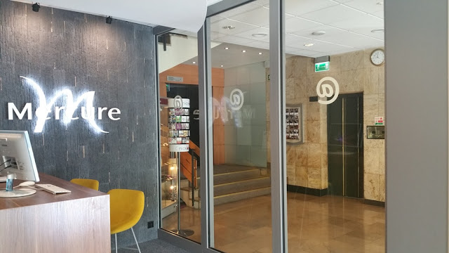 Pokój był bardzo mały, ale za to bardzo ładnie urządzony i czysty. Warto dodać, że jest on klimatyzowany, ale gość może z niej zrezygnować i otworzyć okno. Za co należy się duży plus, bo jednak jestem zwolennikiem powietrza z zewnątrz (bez ulepszaczy), chyba że mamy upały 😉 W pokoju prócz łóżka był zawieszony na ścianie telewizor oraz biurko z fotelem, a pod nim mini barek. Łazienka była wyposażona w standardowe Mercure’owe kosmetyki.